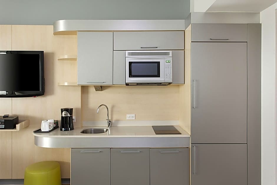 Stay in our spacious and accessible One-Bedroom King Suite with a balcony, offering stunning city views. With a roll-in shower and comfortable amenities like a coffee machine and flat-screen TV, this suite is perfect for a relaxing getaway for 2 adults and 1 child.